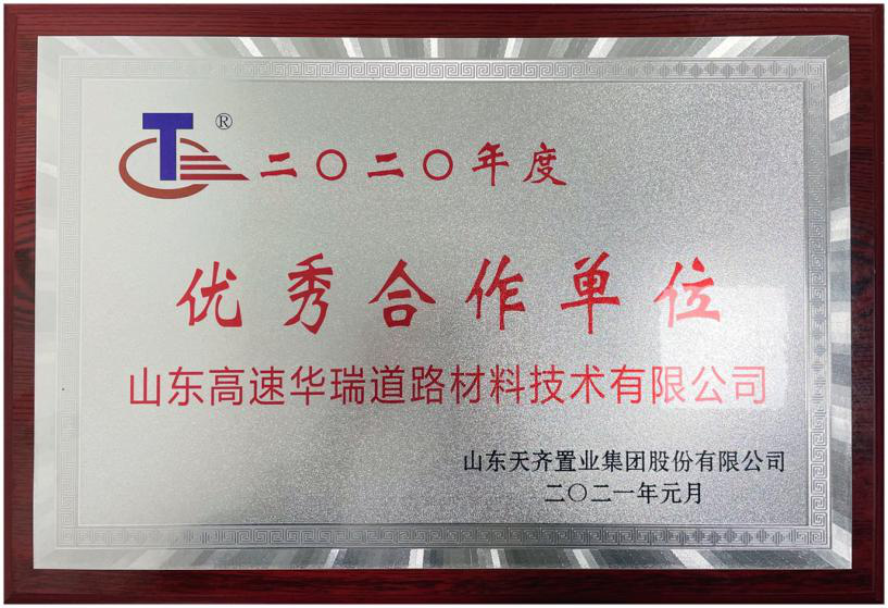 近日,華瑞公司喜獲山東天齊置業(yè)集團(tuán)有限公司2020年度“優(yōu)秀合作單位”榮譽稱號。山東天齊置業(yè)集團(tuán)股份有限公司在完成與威海市市政工程有限公司整合后,在威海市市政建設(shè)領(lǐng)域發(fā)揮著舉足輕重的作用。
