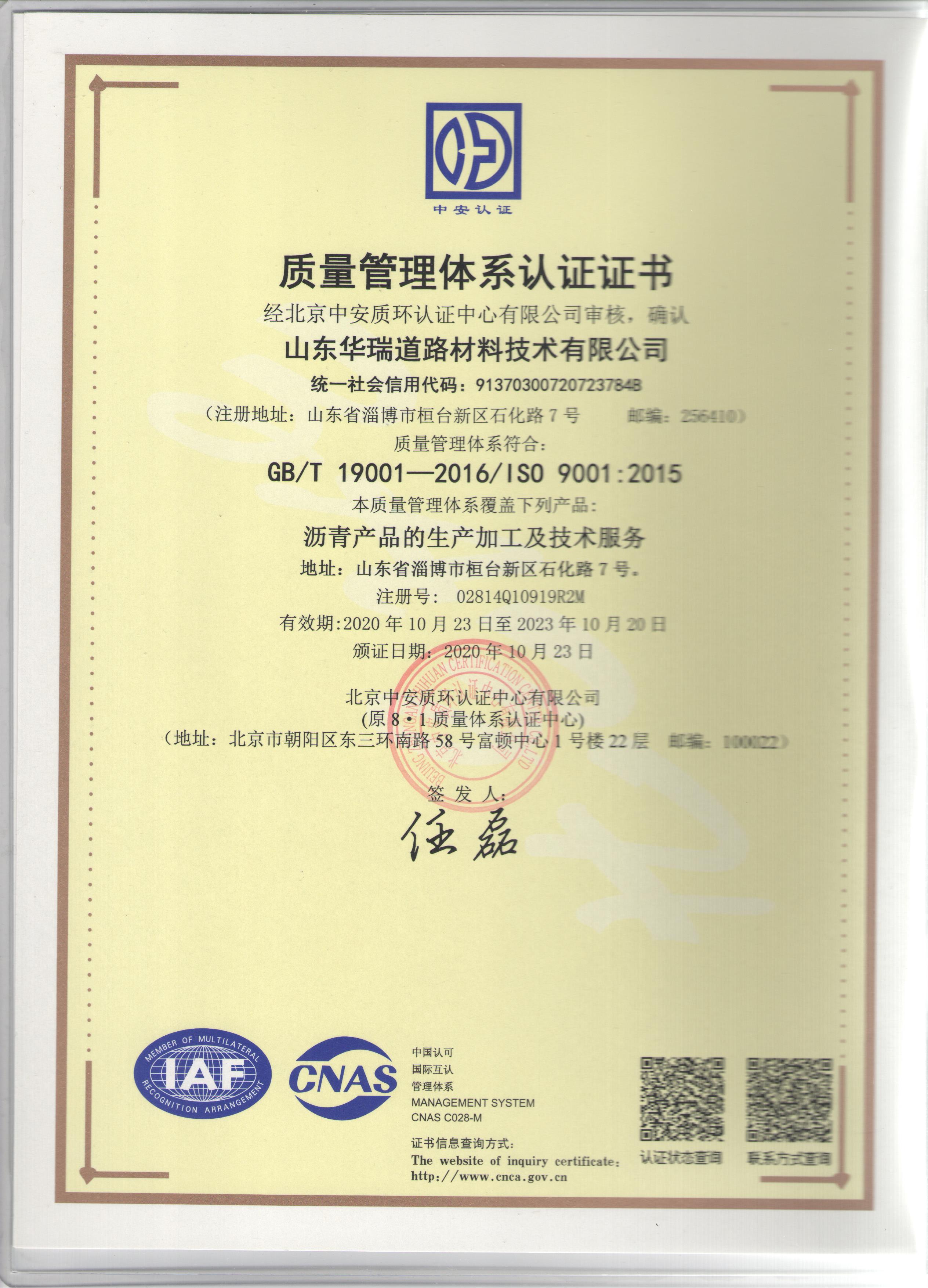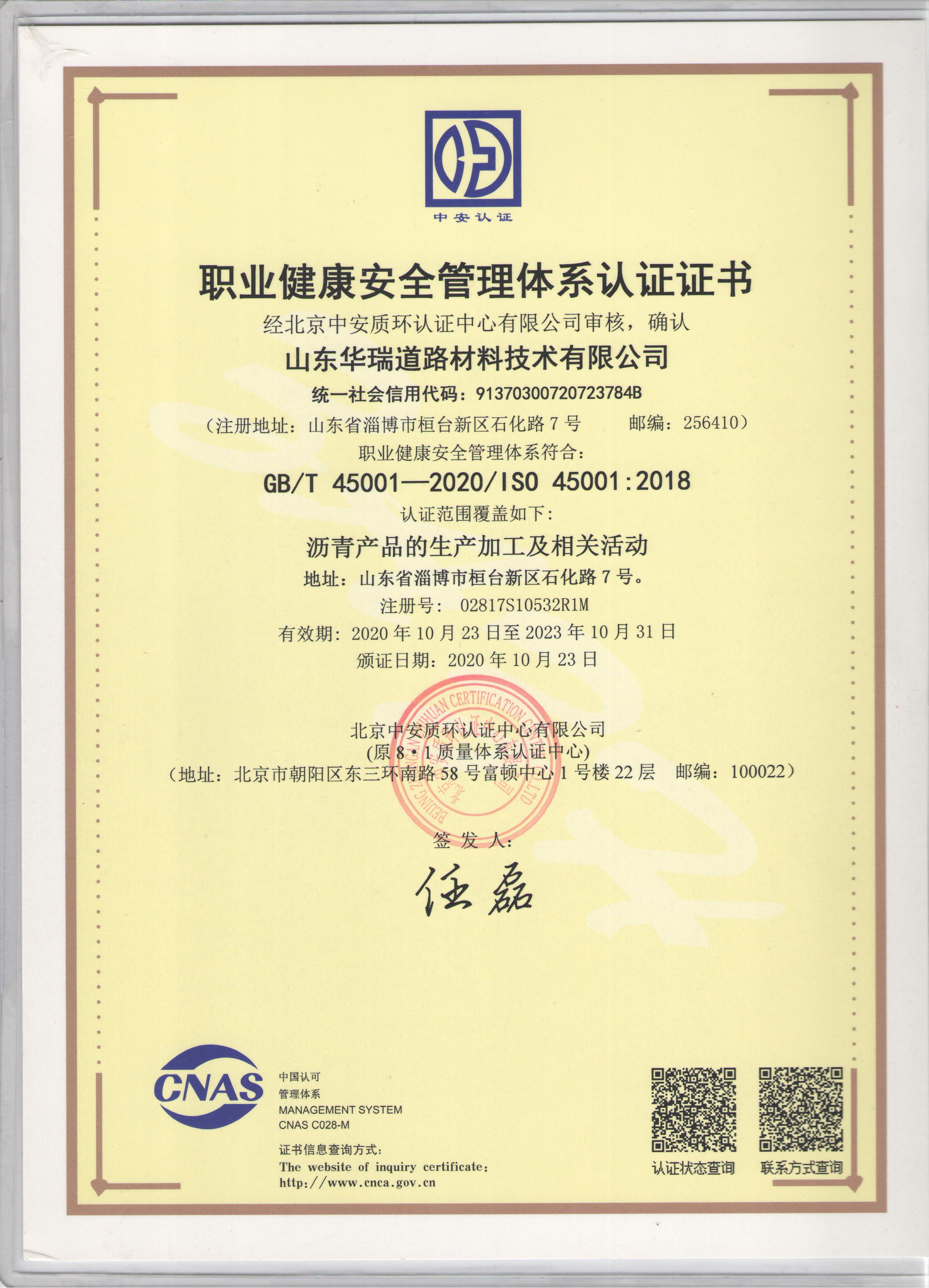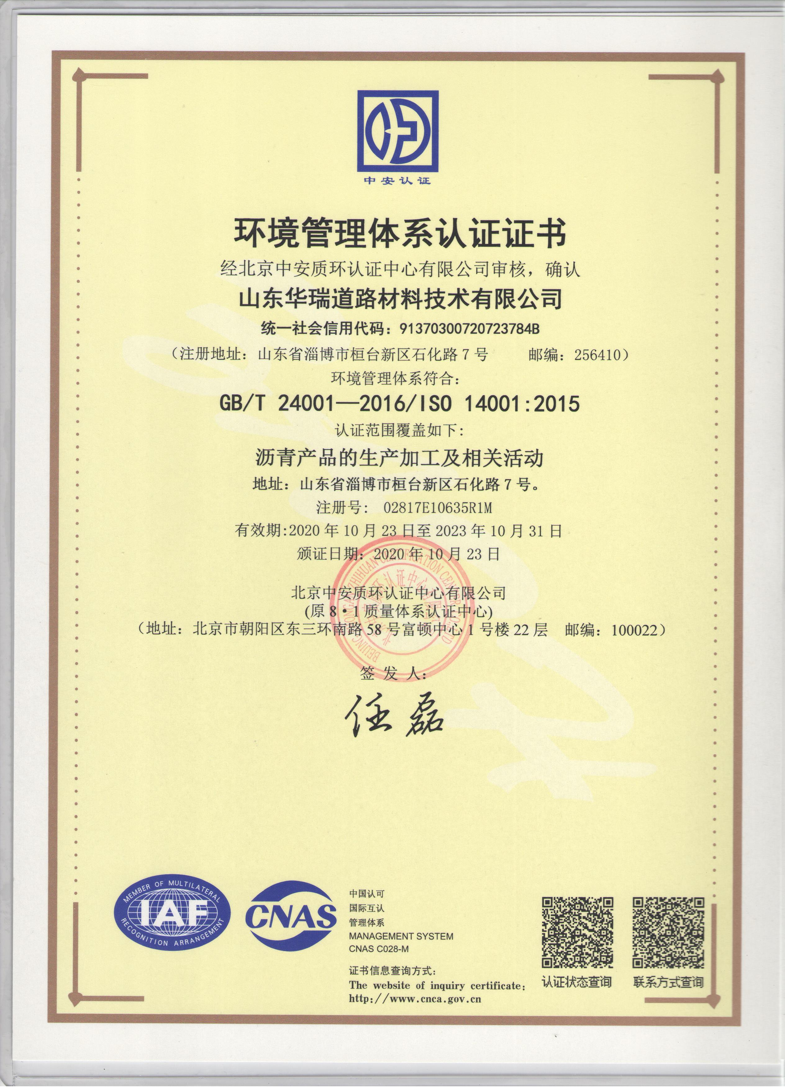 10月25日,公司收到了認(rèn)證中心核發(fā)的三標(biāo)體系認(rèn)證證書(shū)。