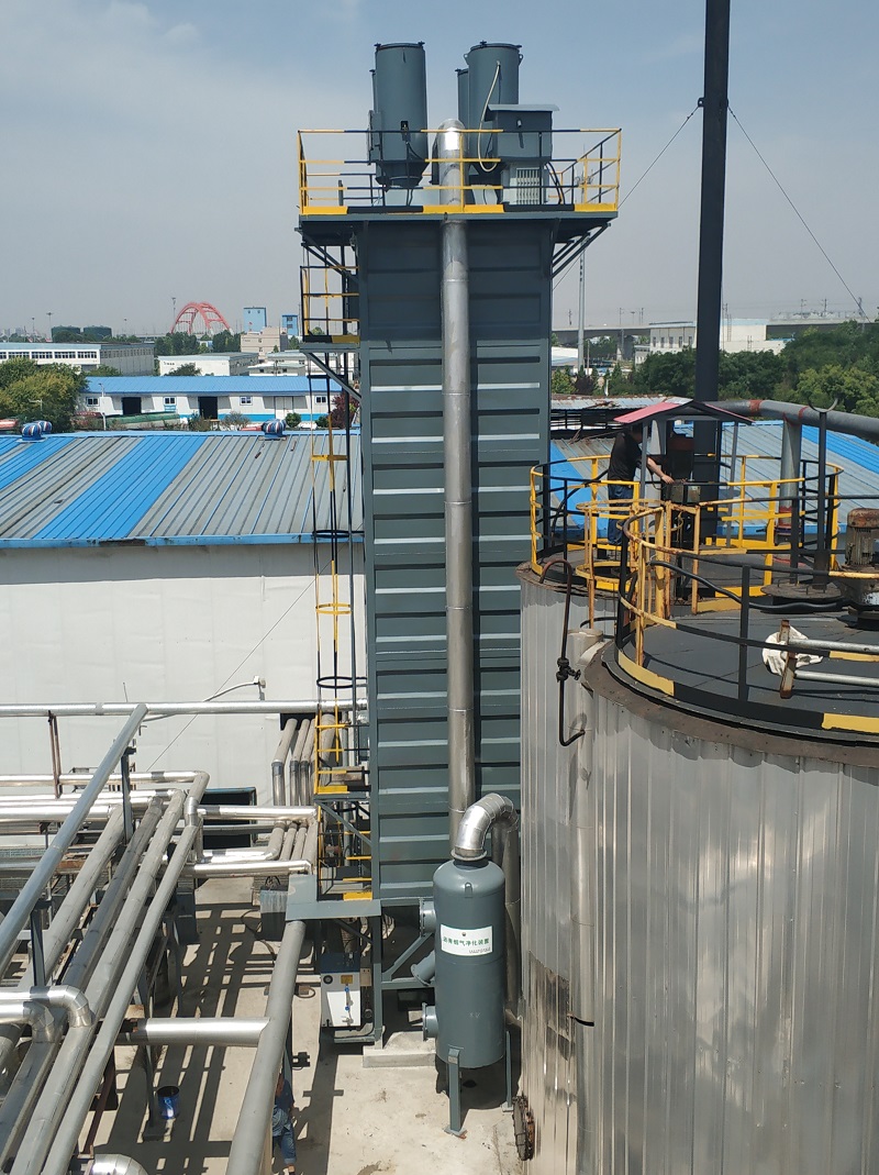 新環(huán)保設(shè)備煙氣處理能力由原來的5000立方米提升到了7500立方米,可以滿足SBS車間所有瀝青成品罐、生產(chǎn)線、快速升溫罐和裝車口環(huán)保處理要求。