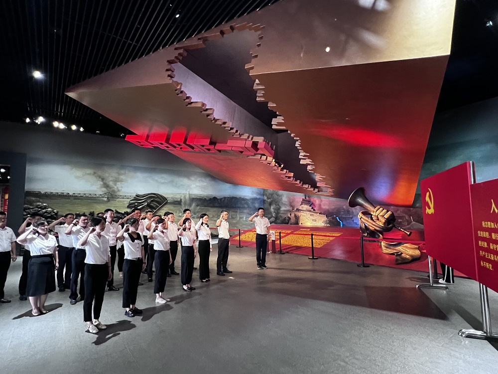 全體黨員在講解員的引導(dǎo)下,了解濟(jì)南戰(zhàn)役的全過(guò)程,回顧解放戰(zhàn)爭(zhēng)波瀾壯闊的歷史進(jìn)程,從“合戰(zhàn)博弈 齊魯硝煙”到“八天八夜 鏖戰(zhàn)古城”,再?gòu)摹敖庸軡?jì)南 泉城新生”到“烈士忠魂 日月同輝”,一個(gè)個(gè)生動(dòng)形象的故事,令大家深刻感受到了一代又一代共產(chǎn)黨人艱苦奮斗、不怕?tīng)奚母锩瘢筒煌跣摹^勇前進(jìn)的歷史擔(dān)當(dāng)。參觀結(jié)束后,全體黨員面對(duì)莊嚴(yán)的黨旗重溫入黨誓詞,并一同前往烈士陵園進(jìn)行祭掃。